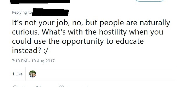 First off lets define what I mean by passive oppression. I am referring to those instances of bigotry that people unaffected by the oppression don't see as problematic. These actions are usually brushed off with a "oh I didn't mean it that way" or "It was Just a joke, lighten up". The thing that makes … Continue reading Please Stop Simultaneously Bringing Attention to and Minimizing Examples of Passive Oppression